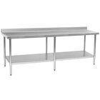 This Eagle Group T3096SEM-BS 30" x 96" work table boasts a durable 14 gauge, type 304 stainless steel top that's great for heavy-duty food prep, butchering, and for use in moist environments! For added convenience the top is sound-deadened to reduce noise in your work area, while its patented uni-lok recessed gusset design reduces lateral movement for superior stability during use. (6) heavy gauge stainless steel 1 5/8" legs with stainless steel bullet feet provide support for the whole table, and an adjustable heavy gauge stainless steel undershelf gives you a place to keep extra supplies close at hand. Plus, this work table has a 4 1/2" rear upturn and 2 1/16" marine counter edges on all sides.