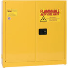 The cabinet even includes 1 1/2" air spaces on the sides, top, and bottom for increased insulation. 2" internal vents also include a fire baffle and cap to further keep your flammable materials protected. The adjustable shelf directs spills to the leak-proof sump, while the bottom shelf includes a 2" raised sill that contains the spill. For added convenience, four adjustable leveling legs are also included to stabilize your cabinet. With a trilingual warning label in English, Spanish, and French, every employee can easily read it. This flammable liquid safety cabinet is a necessary addition to your establishment to prevent accidents or explosions, remain organized, and reduce injuries.