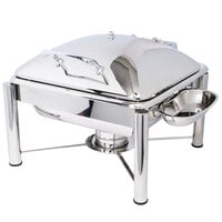 Guaranteed to create a professional, polished display, this chafer has an integrated drip-free feature to keep your tabletops clean from spills and messes. While its slow-letdown mechanism and hydraulic hinges lock the lid at 180 degrees while serving to avoid unexpected closure, its built-in vent hole prevents condensation from accumulating on the tempered glass cover to ensure a crystal-clear view of the contents inside. Plus, it features a release pin so you can easily lift the food pan and comes with a utensil holder that latches onto the chafer's side to easily hold serving ladles required for service. With a three-ply induction design that enables fast, even heating, this soup chafer is the perfect addition to hotels, restaurants, and catered events!