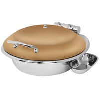 Eastern Tabletop 39311GCP Crown 11 Qt. Stainless Steel Round Induction Soup Chafer with Copper Base and Hinged Glass Dome Cover