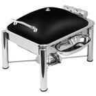 Offering a polished, contemporary display, this chafer has an integrated drip-free feature to keep your tabletops clean from spills and messes. A shelf is also fitted directly below the pan in order to hold canned fuel for traditional chafer use. If you're looking to eliminate the hassle and expense of chafing fuel, it also has a three-ply induction bottom that is compatible with induction heating elements. Plus, it comes with a utensil holder that latches onto the chafer's side to easily hold serving tongs, forks, or knives required for service. Standing on four modern, pillar'd legs that add dimension to your food display, this chafer is the perfect addition to hotels, restaurants, and catered events!