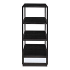 Eastern Tabletop Q-Bik 22 1/4" x 22 1/4" x 69 3/8" Xylo Black Coated Stainless Steel 4-Tier Mobile Buffet Display with Wood Laminate Shelves ST1820WMB
