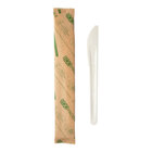 Provide efficient and eco-friendly service with the Eco-Products 6 1/2" compostable no PFAS added white molded paper knife! Crafted from eco-friendly paper, this knife is molded for strength and stability, ensuring it can handle both hot and cold foods with ease. Say goodbye to traditional plastic cutlery and opt for this eco-conscious alternative that is perfect for single-service use. Whether you're running a restaurant, cafe, or take-out service, this compostable paper knife is a convenient and reliable choice that will impress your environmentally conscious customers.
