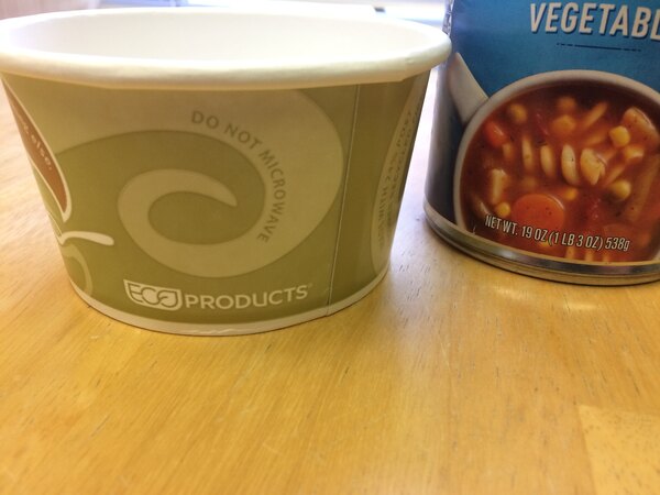 Soup cups are a disaster from both the ecological point of view as what makes then heat & liquid resistant makes them non compostable. At least these are made from recycled materials