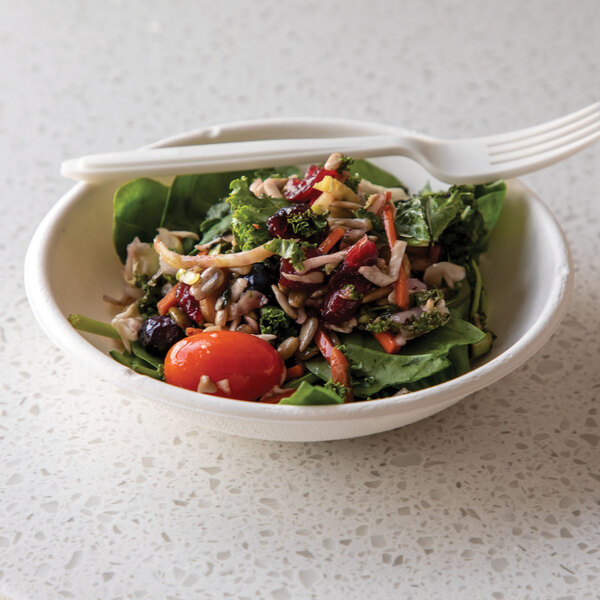 This bowl is made from a sugarcane fiber blend with no PFAS intentionally added. With this product, you can offer your guests a more sustainable option at your restaurant, buffet, or catered event. This BPI-certified bowl is commercially compostable only where facilities exist. Facilities may not exist in your area.