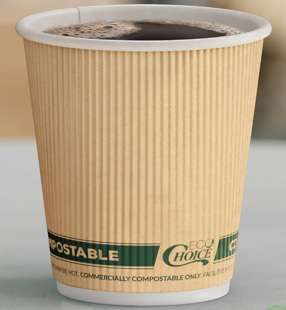 This EcoChoice 10 oz. sleeveless kraft paper hot coffee cup is perfect for your coffee shop, bistro, concession stand, or kiosk, minimizing waste, while ensuring efficiency. The innovative rippled wall on the outside of each cup keeps the surface warm to the touch, not hot like with comparable smooth surface cups. Use this cup to hold coffee, cappuccino, and piping hot lattes. This cup is the ideal way to serve hot beverages, to-go, to all of your customers!