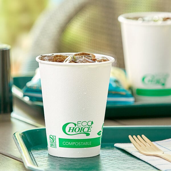 Promote environmental friendliness at your concession stand, cafe, or restaurant with this EcoChoice 12 oz. compostable PLA paper cold cup. This cup is the perfect way to offer drinks to-go while still showing that your business cares about the environment.