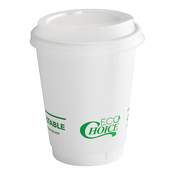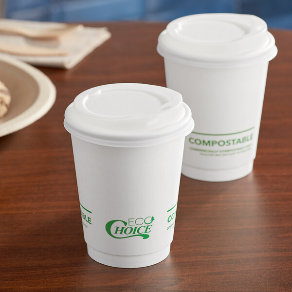 - Item #: 50012dwplaw50EcoChoice 12 oz. Smooth Double Wall White Compostable Paper Hot Cup and PLA Lid - 50/Pack
