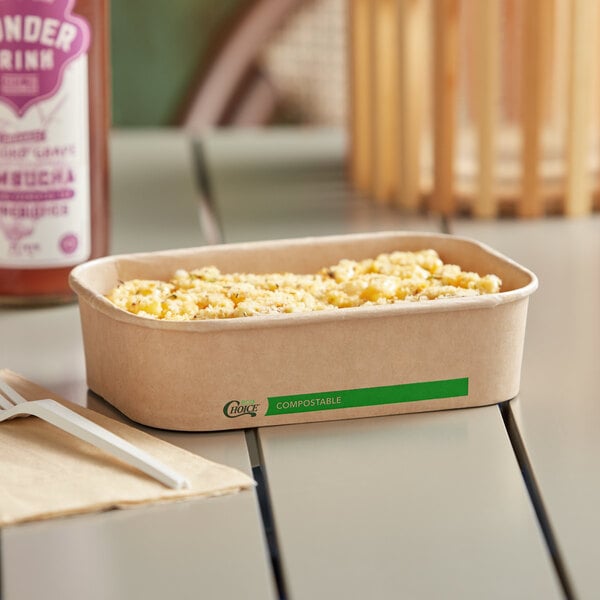 Holding up to 16 oz., this container is ideal for hot and cold foods, desserts, and sides. Manufactured from a bio-based lining with no added PFAS, it features protection against leaks from oil, grease, or sauces. The compatible lid (sold separately) keeps food secure and protected during transport.