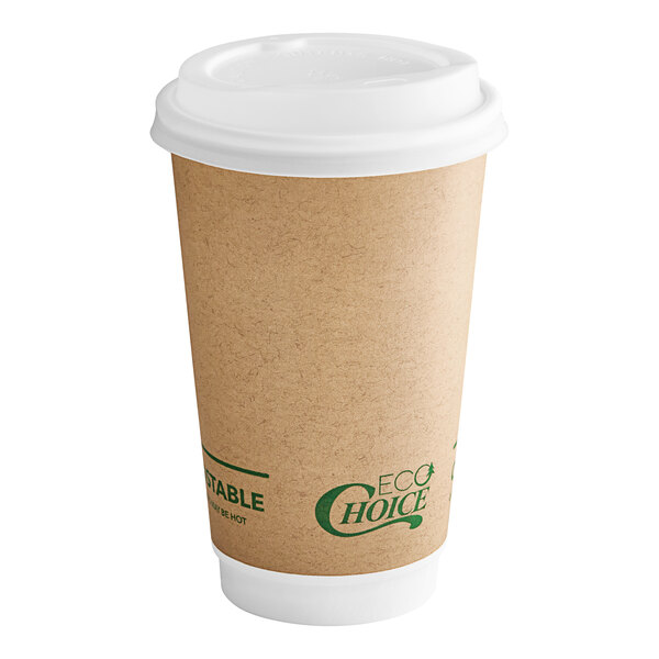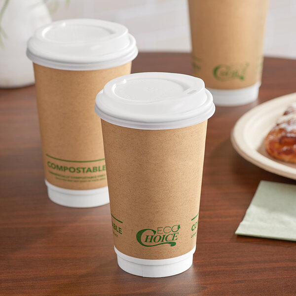 - Item #: 50016dwplak50EcoChoice 16 oz. Smooth Double Wall Kraft Compostable Paper Hot Cup and PLA Lid - 50/Pack