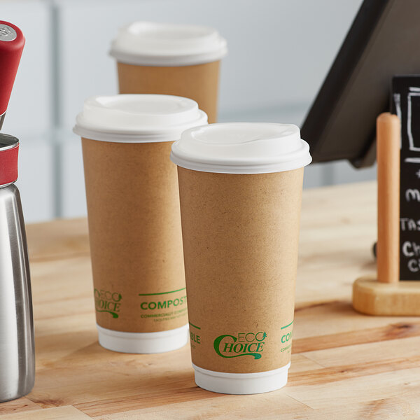 - Item #: 50020dwplak50EcoChoice 20 oz. Smooth Double Wall Kraft Compostable Paper Hot Cup and PLA Lid - 50/Pack