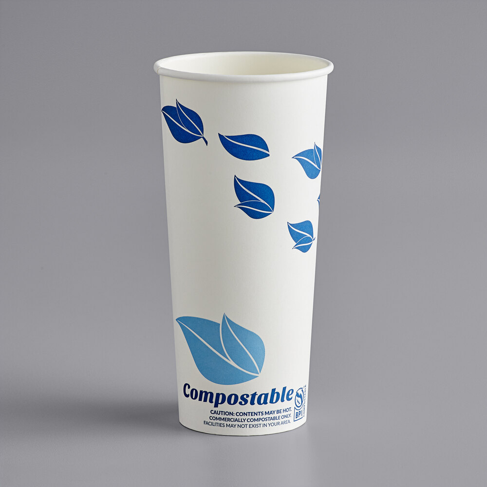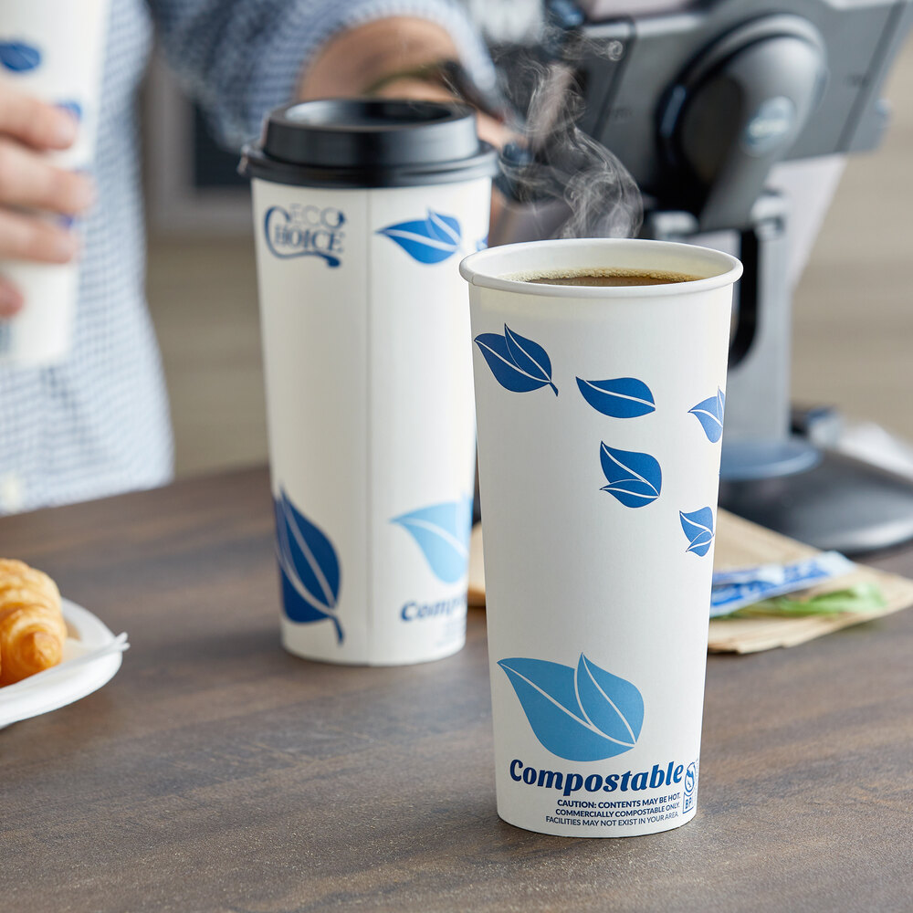 We use these for the time being because there is not currently a home compostable coffee cup. These types have to be taken to a facility to be disposed of properly/in an eco-friendly way. For now they are okay.