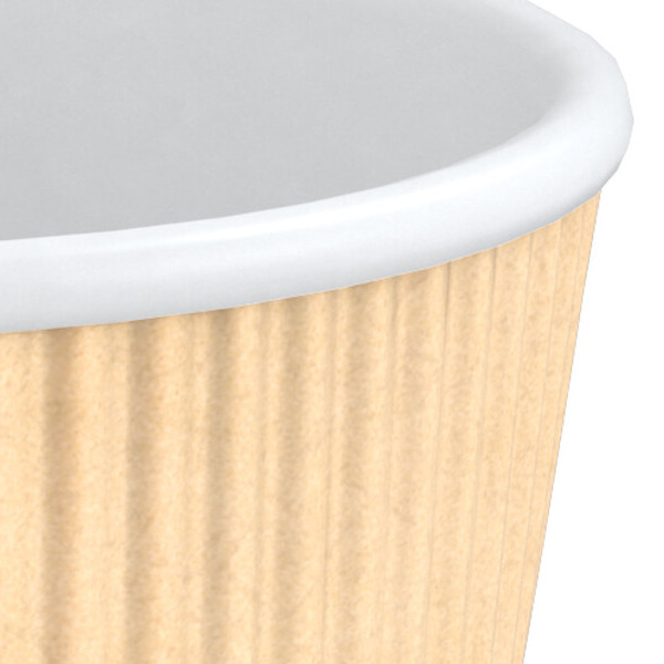 The outside of each cup features a unique ripped wall design that eliminates the need for a compatible cup sleeve or for double-cupping to prevent burns. This rippled wall also allows for a better grip, reducing the chance of slipping or spilling the piping hot beverage within the cup. Plus, without the need for additional cups or sleeves, this rippled wall saves both money and storage space, making it an economical option for everyday service.