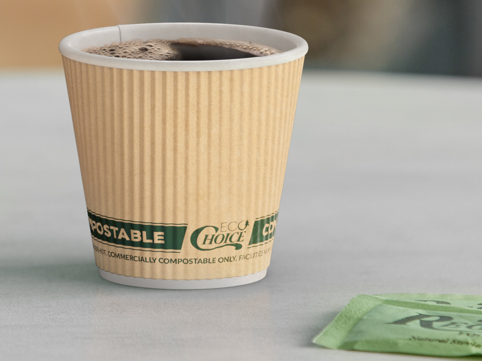 This EcoChoice 4 oz. sleeveless kraft paper hot coffee cup is perfect for your coffee shop, bistro, concession stand, or kiosk, minimizing waste, while ensuring efficiency. The innovative rippled wall on the outside of each cup keeps the surface warm to the touch, not hot like with comparable smooth surface cups. Use this cup to hold coffee, cappuccino, and piping hot lattes. This cup is the ideal way to serve hot beverages, to-go, to all of your customers!