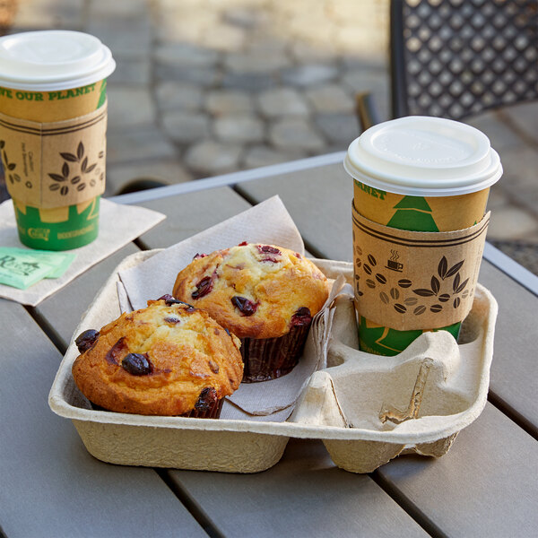 This 2-cup carrier with tray is made from strong molded fiber and 100% recycled material! It's a great way to promote your green values to customers in comparison to foam or plastic alternatives. The strong design has a molded feel and texture that offers an easy grip.