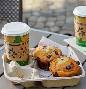 This 2-cup carrier with tray is made from strong molded fiber and 100% recycled material! It's a great way to promote your green values to customers in comparison to foam or plastic alternatives. The strong design has a molded feel and texture that offers an easy grip.