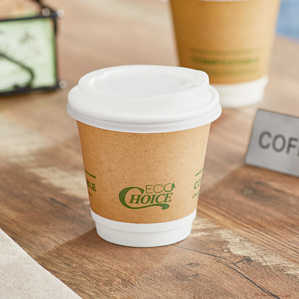 - Item #: 5008dwplakr50EcoChoice 8 oz. Squat Smooth Double Wall Kraft Compostable Paper Hot Cup and PLA Lid - 50/Pack