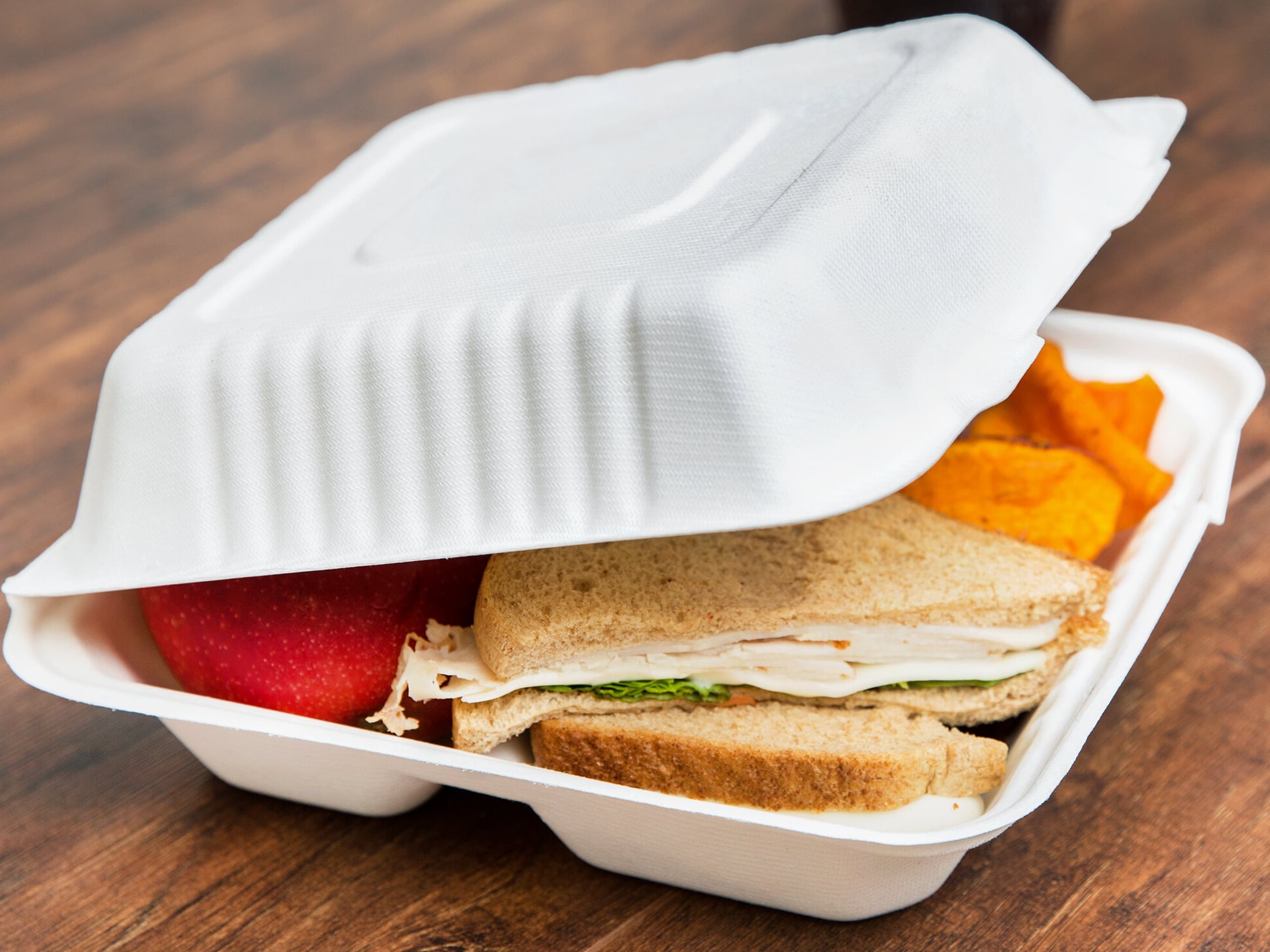 We love these compostable sugarcane containers! Our town banned the use of styrofoam and these were an excellent replacement for the cost and they work great!
