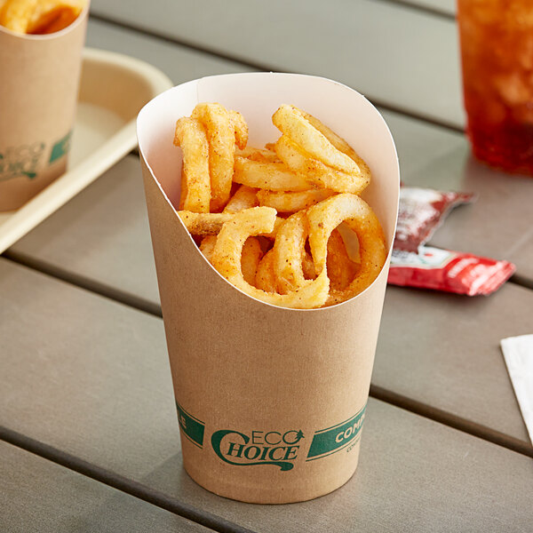 This EcoChoice 12 oz. paper scoop cup is perfect for carnivals, concession stands, fast food establishments, and snack bars. The round shape and broad opening make it easy to carry and to scoop, ensuring ease of use by staff and patrons, alike. At the same time, the surface provides space to include your own logo or labeling while the disposable design ensures quick, no-hassle cleanup.