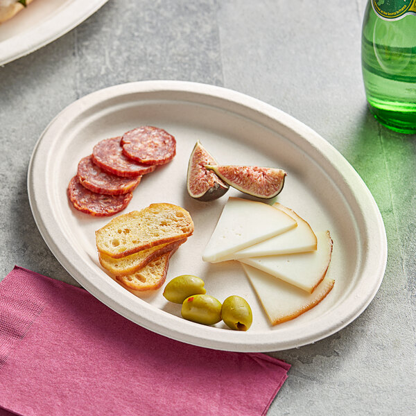 Perfect for both hot and cold foods, this plate is an ideal solution for restaurants, caterers, and sandwich shops that serve anything from hot entrees to cold salads and dessert dishes. Serve up lunch or dinner plates, sandwiches, and desserts on this 10" x 7 1/2" plate. Thanks to its environmentally conscious design, your customers will feel safe and satisfied each time you use this plate in your dining establishment.