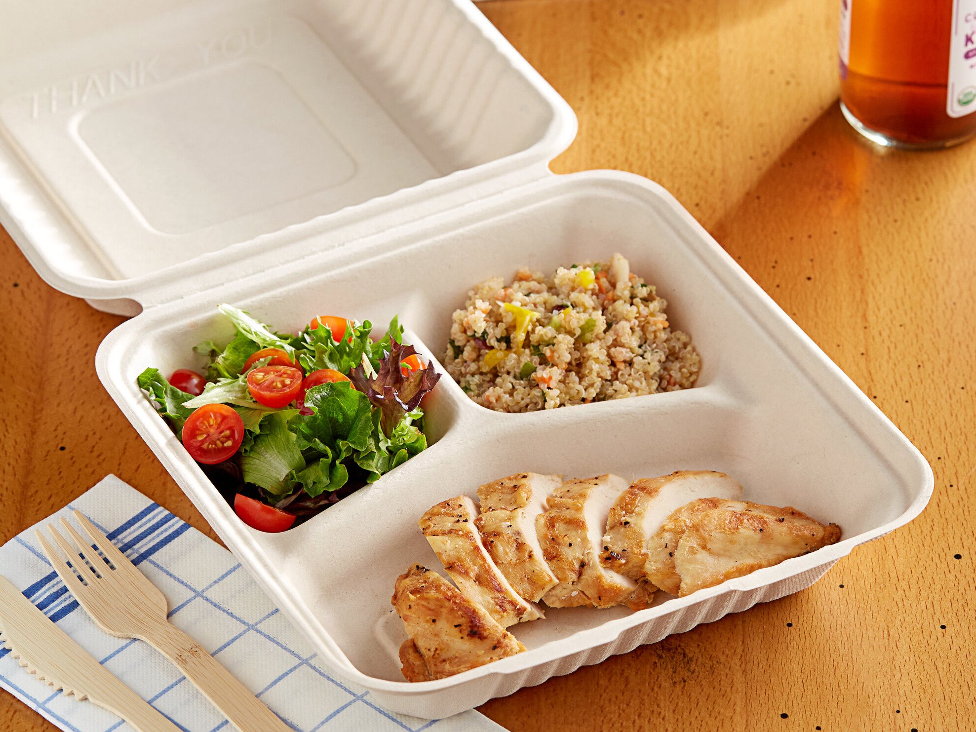 This plant fiber is made of a highly renewable by-product of sugarcane processing and uses the waste of sugarcane after it has been harvested. Take a step toward going green with this environmentally smart disposable take-out container!