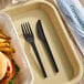 "This compostable silverware is very sturdy. Our customers love recyclable and compostable plastic products. It is very strong and does not bend or break. The black looks very clean, smooth, and professional."