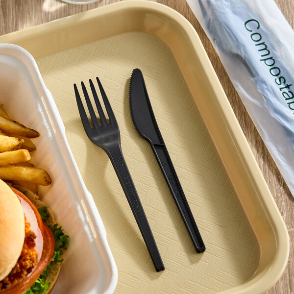 Show your guests that your establishment cares about the environment and about supplying excellent products by providing them with this disposable CPLA fork and knife kit! Use these utensils with other EcoChoice disposable items, like their cups, plates, and bowls (sold separately), in your restaurant, grab-and-go retail stand, office breakroom, or school cafeteria.
