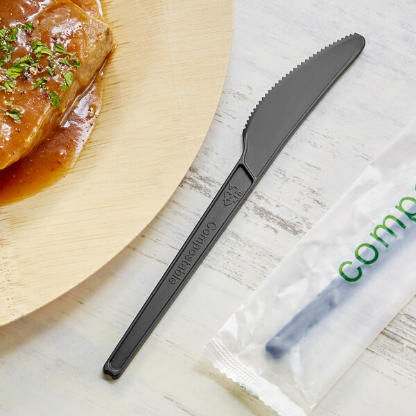 Show your guests that your establishment cares about the environment and about supplying excellent products by providing them with this disposable CPLA knife! Use this utensil with other EcoChoice disposable items, like their cups, plates, and bowls (sold separately), in your restaurant, grab-and-go retail stand, office breakroom, or school cafeteria.
