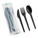 This EcoChoice wrapped heavy weight 6 1/2" black CPLA knife, fork, and spoon kit is a more sustainable option for disposable cutlery! An ideal alternative to traditional, petroleum-based plastic utensils, the cutlery is made of CPLA, a plant- and chalk-based plastic that's formed with renewable resources to minimize environmental impact upon disposal. CPLA (crystalized PLA) is stronger and can withstand temperatures than standard PLA, ranging from -4 to 212 degrees Fahrenheit, resulting in a sturdier utensil.