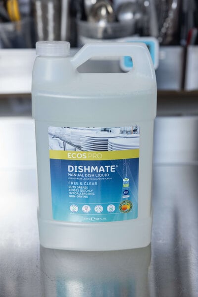 Make your plates, utensils, and glasses shine with this ECOS PL9721/05 Pro Dishmate 5 gallon free and clear manual dishwashing liquid. This liquid is formulated specifically to cut through grease and clean dishes without leaving residue behind. This is a quick-rinse formulation that leaves less residue behind on dishes, allowing for a faster rinse time and a reduction in overall water use. Plus, its gentle, non-toxic formula is safe for use on hands and will not dry out the skin.