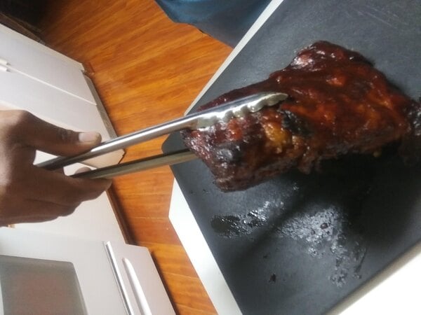 Solid, heavy-duty build. These tongs feel sturdy in the hand and don’t bend even when lifting heavier items like roasts or grilled meats