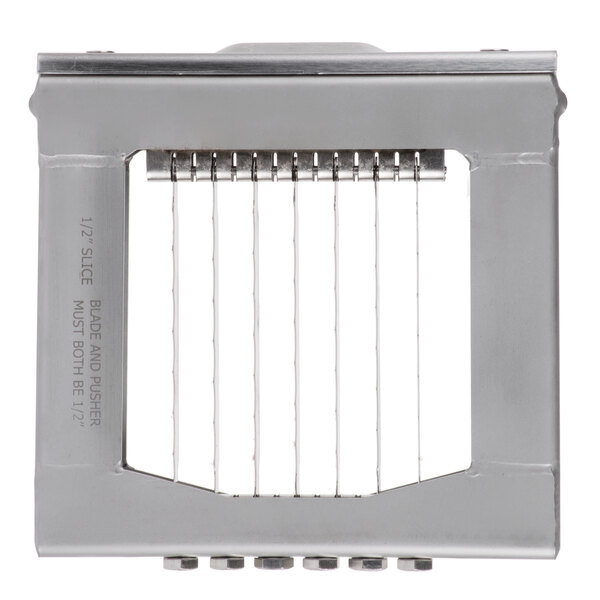 Turn your Edlund Titan Max-Cut dicer into a slicer with this Edlund AS074 1/2" slicer blade! By pairing this blade with the coordinating push block, you can create the perfect 1/2" slice. Razor-sharp blades will easily slice through fruits and vegetables so that you can create fresh ingredients and toppings for your most popular dishes. This assembly works with Edlund Titan Max-Cut models purchased after February 2017 with serial numbers greater than 2000.