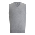 This sweater vest is made of a 100% acrylic jersey knit fabric. This low-pilling material maintains a clean appearance, while the acrylic provides excellent color retention and some wrinkle resistance. This vest has a rib knit neck, shoulders, and bottom for increased elasticity and mobility.
