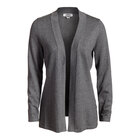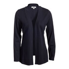 This cardigan is made of a soft 52% cotton / 31% acrylic / 17% nylon blend. It features an attractive navy color, and it has a flattering feminine silhouette. It boasts a comfortable standard fit and a long length for a unique, stylish look.