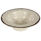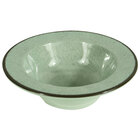 With its soft cameo blue color, wide rim, and unique crackle design, this Elite Global Solutions DB6M Mojave Vintage California 10 oz. bowl adds a touch of simple elegance to your dinnerware collection. Reminiscent of the breezy, laid-back feel of the California coastline, the colors and design in the Elite Global Solutions Mojave collection add a vintage appeal to any decor. Whether you're serving soup, salad, pasta, or noodle dishes, this bowl will help frame your offerings with its crackle finish and rustic brown-colored rim. Made of heavyweight melamine, this product is ideal for most commercial settings from quick service restaurants to cafes and hotel dining rooms. The melamine is lighter than china and break-resistant for dependable use in high-traffic dining areas.