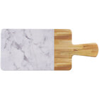 Combine the best of sleek style and modern day convenience with this Elite Global Solutions M127RCM Sierra 12" x 7" faux alder wood and carrara marble rectangular serving board with handle! Featuring the style of versatile alder wood mixed with carrara marble, in a heavy weight melamine design, this board gives you the look you want, with the practicality you need. It's easier to clean and more sanitary than a wooden board, with a chip- and stain-resistant surface that's resistant to mold and mildew growth, too.
