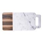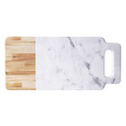 Serve your guests everything from freshly-baked bread to signature hors d'oeuvres with this Elite Global Solutions M715RCM-HWC Sierra 15" x 7" faux hickory wood and carrara marble melamine serving board. Featuring the style of warm hickory wood mixed with carrara marble, in a heavy weight melamine design, this board gives you the look you want, with the practicality you need. It's easier to clean and more sanitary than a wooden board, with a chip- and stain-resistant surface that's resistant to mold and mildew growth, too. Plus, its handle makes it easy for wait staff to transport the board from the kitchen to the dining and room and back.