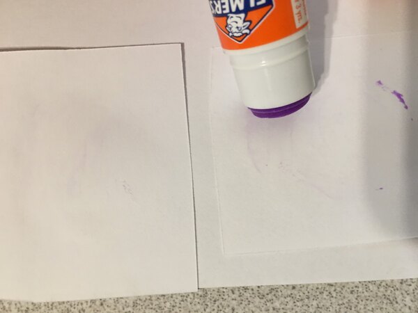 Adhere paper, cardboard, or photos with ease with this Elmer's E503 0.24 oz. disappearing purple school glue stick! This glue stick goes on purple so you can visually see where it is applied, guaranteeing the entire area is coated before adhering to another surface. To minimize the unsightly appearance of stray adhesive, this glue then dries clear with no trace of purple left behind. Plus, should a mess occur, it will conveniently wash right out of clothing and other textiles.