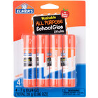 Adhere paper, cardboard, or photos with ease with this four pack of Elmer's E543 0.24 oz. disappearing purple school glue stick! This glue stick goes on purple so you can visually see where it is applied, guaranteeing the entire area is coated before adhering to another surface. To minimize the unsightly appearance of stray adhesive, this glue then dries clear with no trace of purple left behind. Plus, should a mess occur, it will conveniently wash right out of clothing and other textiles.
