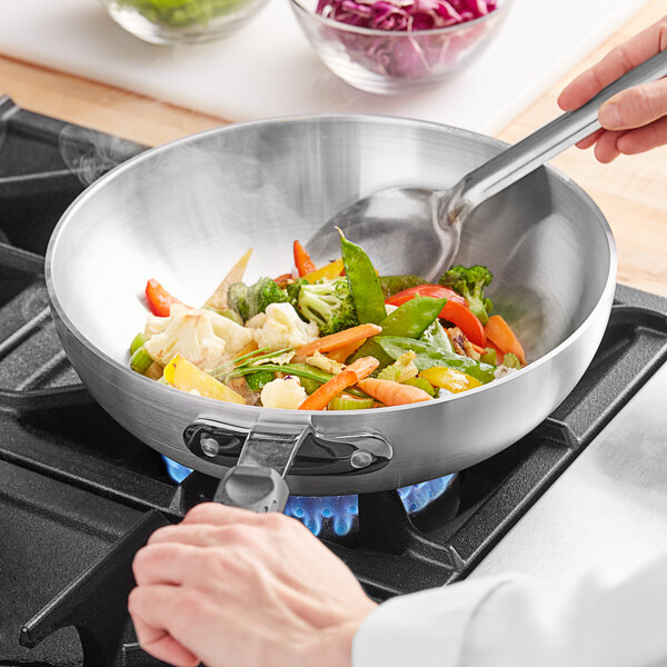 This pan is perfect for stir fry or other ethnic cuisines! This pan also features a flat bottom that makes stove top use a breeze. It is ideal for commercial kitchens and restaurants.