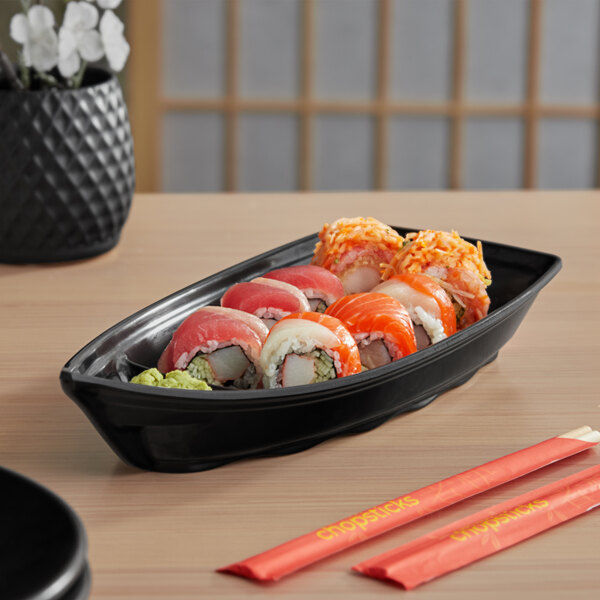 - Item #: 303blb112bkEmperor's Select 12" x 5 7/16" Black Melamine Sushi Boat - 12/Case