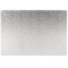 Provide a stable foundation for your cake and easily insert it in a box with this Enjay 1/4-17122512W12 25" x 18" fold-under 1/4" thick full white cake board. This durable board supports and carries even the heaviest cakes. Plus, its top features a crisp, white coloring that ensures your vibrant, colorful icings and intricate designs stand out for a stunning appearance. Add this cake board to your bakery, grocery store, or market for quality cake support!