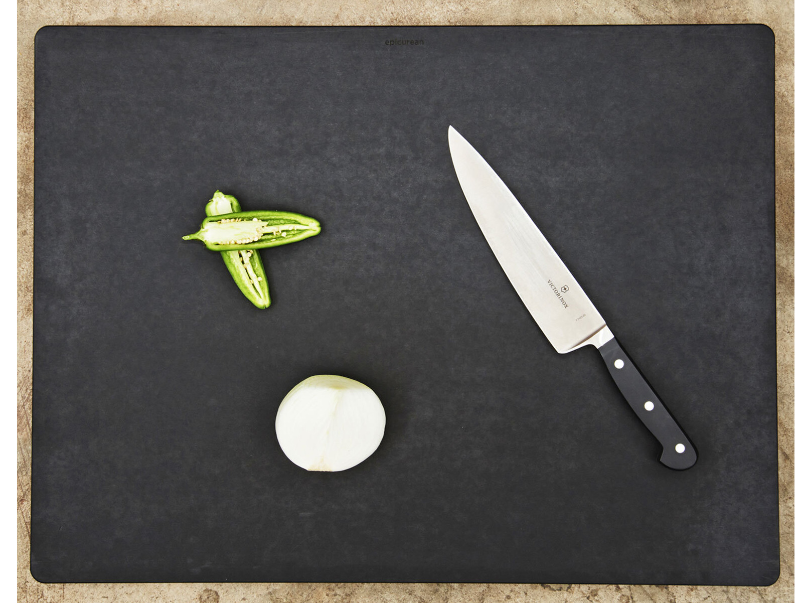 We did not get much use out of this cutting board. I thought it would work perfect for us, but it didn't. The black coating flakes off very easily. If you were to chop onions on it, there will be black specks about the size of glitter all over them. We tried scrubbing and washing it over and over but it didn't solve the problem. Unfortunately we passed the return date. Contacted the manufacturer and they told us we need to buy fine sandpaper and sand it down until it no longer flakes. Seems odd to have to do this on an expensive cutting board. Would not recommend.