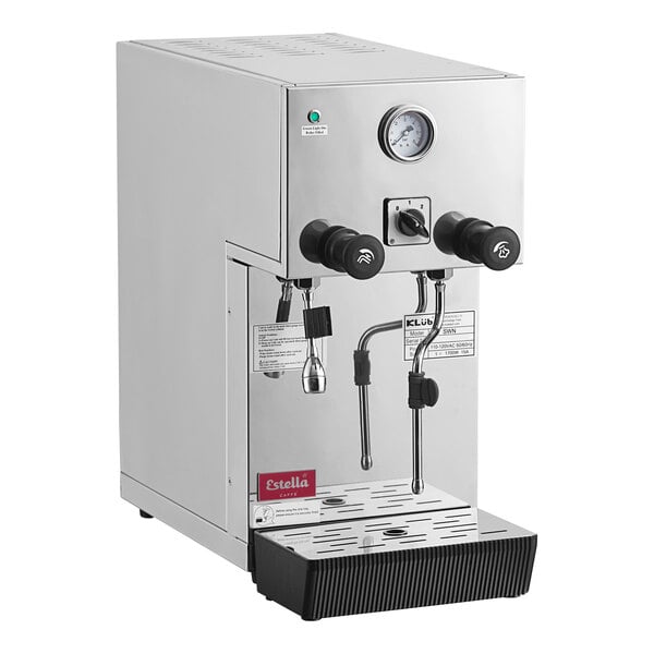 Steam milk to perfection with this Estella Caffe semi-automatic milk steamer! This machine is perfect for steaming and frothing your milk offerings to help provide your guests with delicious, warm beverages effortlessly. The durable stainless steel body features a cool-touch stainless steel steam wand that provides automatic temperature control and continuous steam, allowing you to produce delicious drinks time after time.