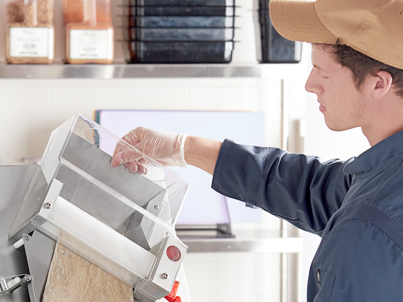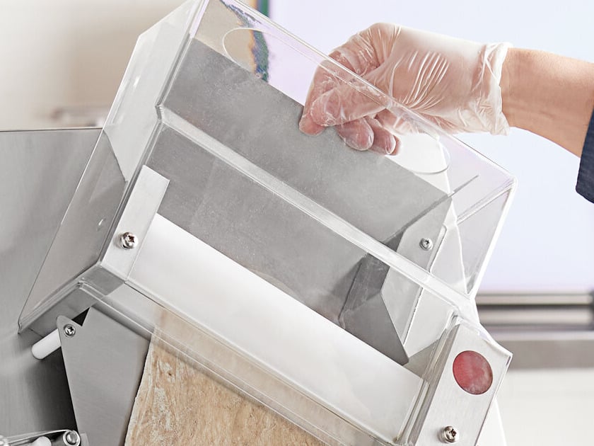 For the best results, flattening your dough by hand down to 3/8” thick before using the dough sheeter is recommended.