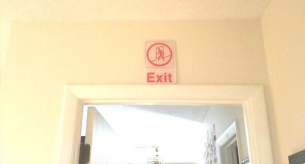 This size is perfect for the customer side where the exit needs to be clearly marked. More of a legal thing, but I like the symbol and simple styling.