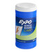 Keep dry erase boards clear of stains and dried-on ink by using this Expo 81850 5 1/2" x 8" dry-erase board-cleaning wet wipe. Combining the convenience of a spray cleaner with a cloth, it provides you with a disposable wipe that you can grab, use, and then throw away. The wipe removes stubborn marks or ghosting stains from most dry erase surfaces. A sturdy container holds the wipes and also keeps them moist, so they are ready for instant use.