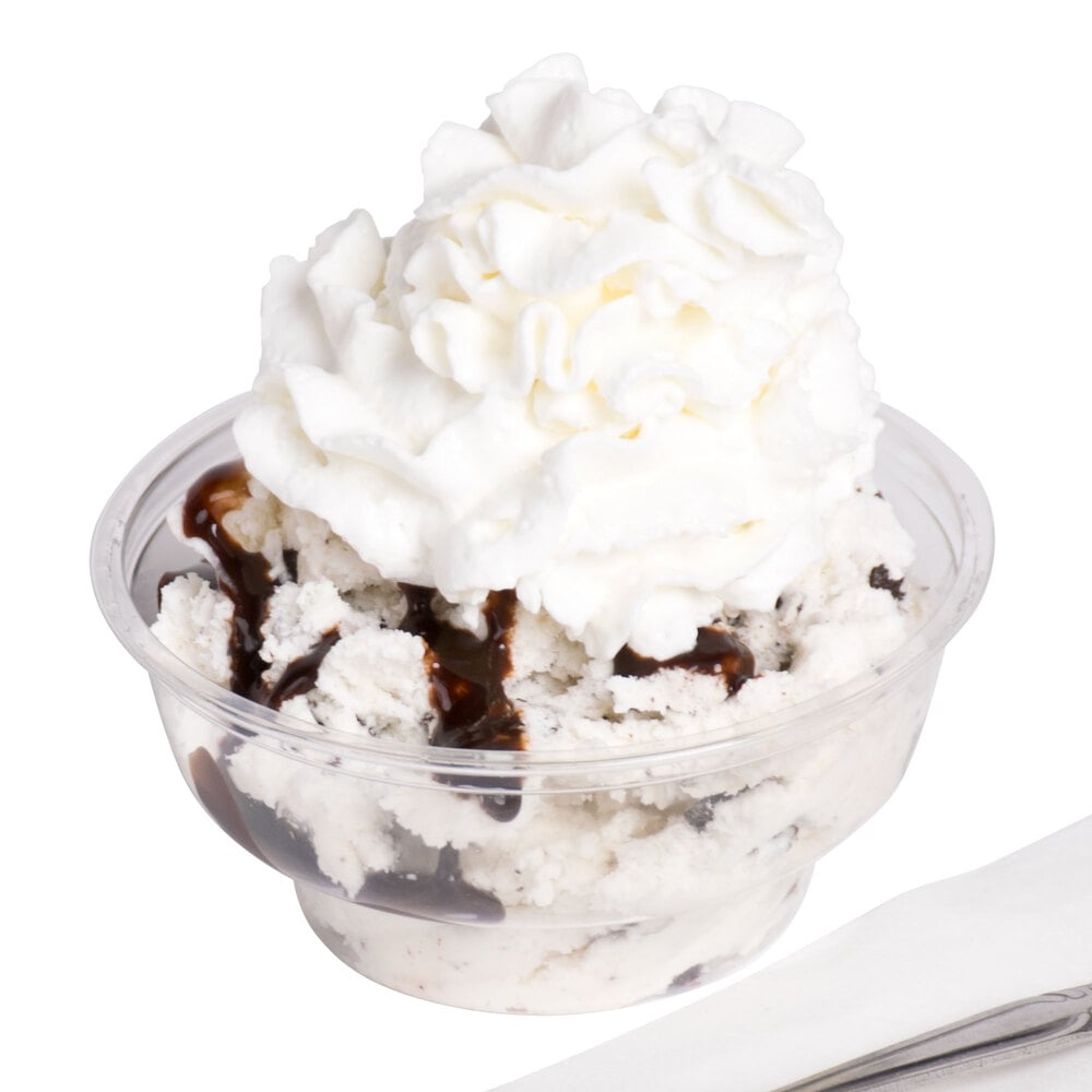 Great cup for the perfect amount of ice cream! It’s a good quality cup and isn’t flimsy whatsoever. We love that it fits a good amount of ice cream, and top off with whipped cream.