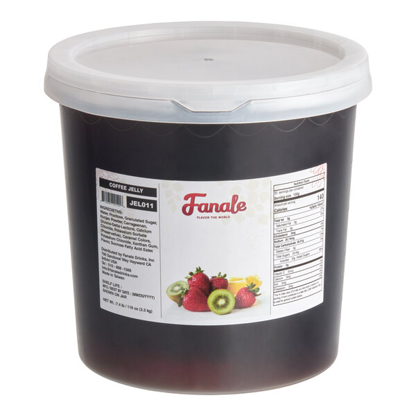 This product is an exciting alternative to traditional tapioca pearls or crystal boba! You can use this caffeinated topping to add a perfect finishing touch to bubble teas or smoothies, or use it to add volume and value to other menu offerings like shaved ice, frozen yogurt, or ice cream. This delicious topping is a fun addition to any number of cold beverages and desserts. To save time in your busy establishment, this jelly topping is fully prepared and ready to serve! In order to keep your establishment in good supply, this 7.4 lb. container holds approximately (33) 100 g servings of jelly topping and is resealable to help maintain the product's freshness.