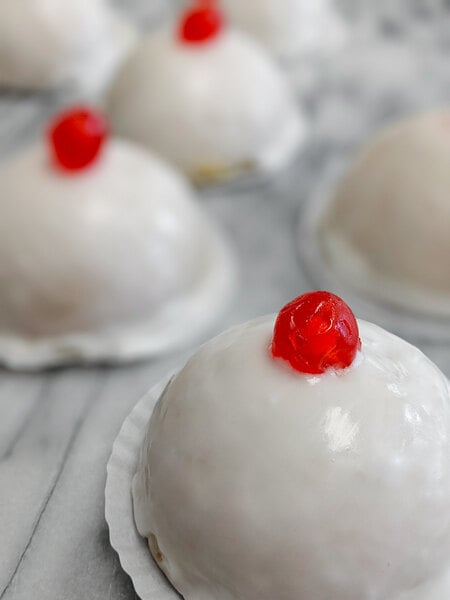 This hemisphere pan is really good quality very even heating and we use them a lot to add a dome on top of our multi-tier cakes and you can always put two together to make balls such as basketballs softball little soccer balls and so forth perfectly round looks great as well